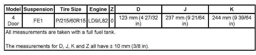 I posted the height specs for your model in the fourth drawing, but I was dismayed to find they didn't include the line drawing to show where those measurements are to be taken. Every tire and alignment shop has a small book that lists every model and where to take the readings. Chrysler has a somewhat complicated method but it takes into account different size tires. For most other models, they either just list one height spec, or they'll provide multiple values for all the different tire size options that were available.