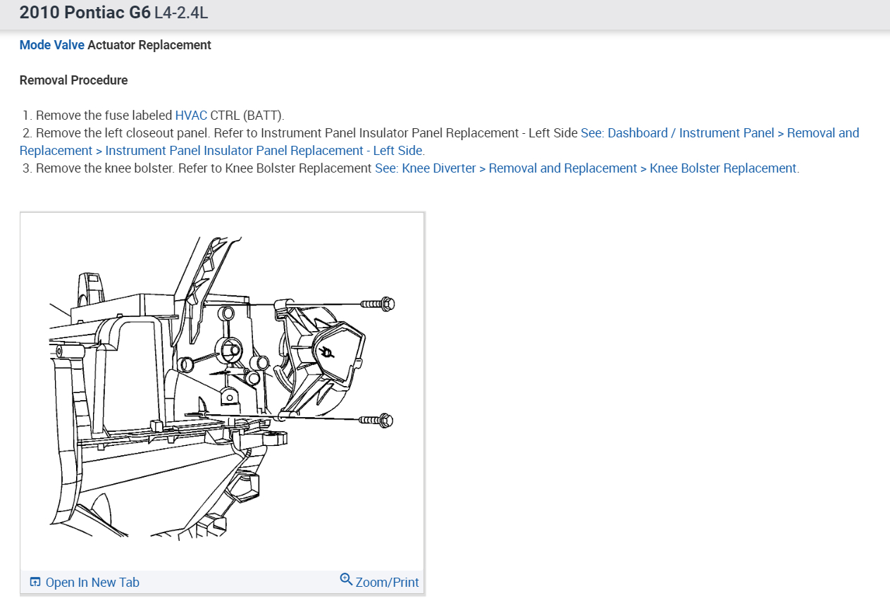 The car is currently stuck on defrost. I know that it has at least 2 actuators associated with the HVAC system, but I need help locating which one I need to replace. If instructions can be shared on the removal process as well that would be greatly appreciated.