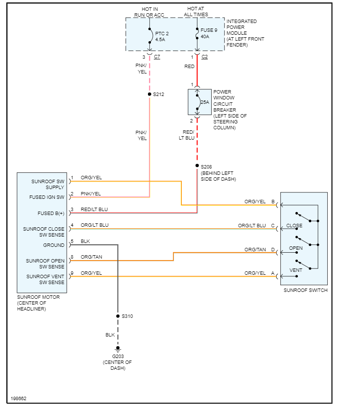 I opened up the sunroof on my ride home and when I stopped the glass would not close. I popped the switch and checked it with my meter, and it checked out good. I am not getting any power to the plug and cannot find a fuse or relay for the sunroof. Any ideas?