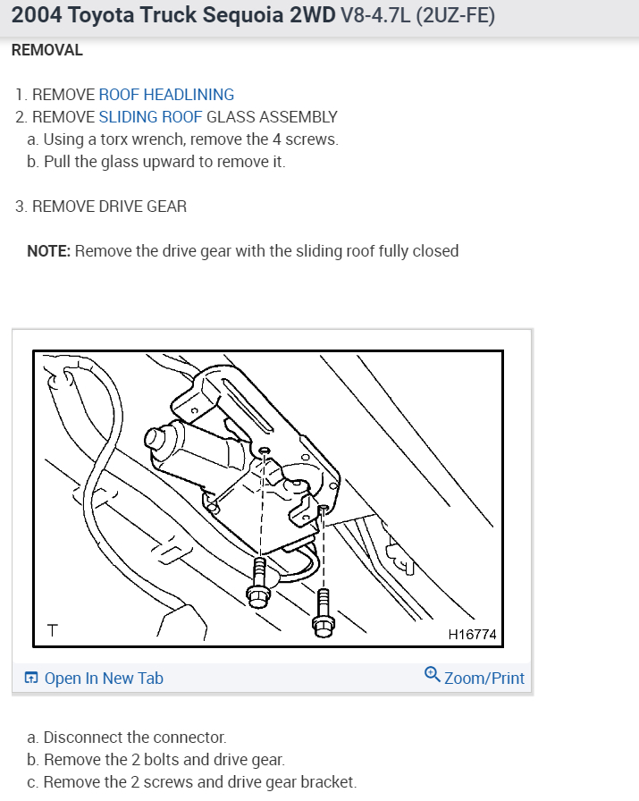 My sunroof motor works okay (I pulled it and operated it while disconnected from the regulator), but it won't actually move the sunroof when it's connected. It will try to move it when I push slide, but the gear only goes about 1/16 of a turn. Any tips would be greatly appreciated.