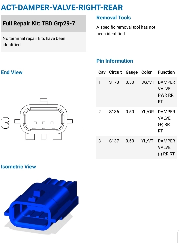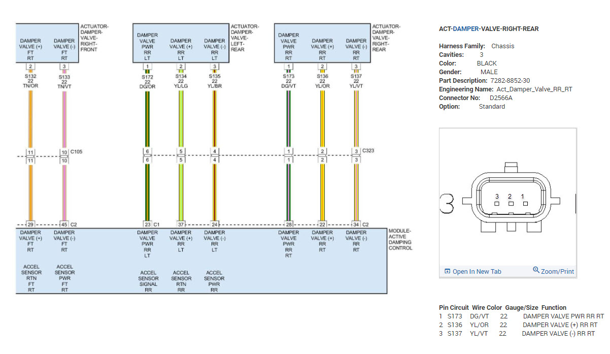 I'm looking to figure out the wiring diagram for 2012 srt8 charger rear right active dampening suspension 05181576ac the one I'm looking to find the diagram meaning which of the 3 wires belong to what spot in the clip and what the function of each wire is because