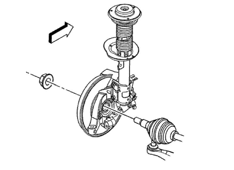 Caution: To prevent personal injury and/or component damage, do not allow the weight of the vehicle to load the front wheels, or attempt to operate the vehicle, when the wheel drive shaft(s) or wheel drive shaft nut(s) are removed. To do so may cause the inner bearing race to separate, resulting in damage to brake and suspension components and loss of vehicle control.