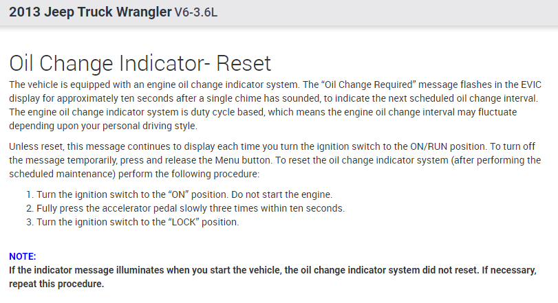 Unless reset, this message continues to display each time you turn the ignition switch to the on or run.