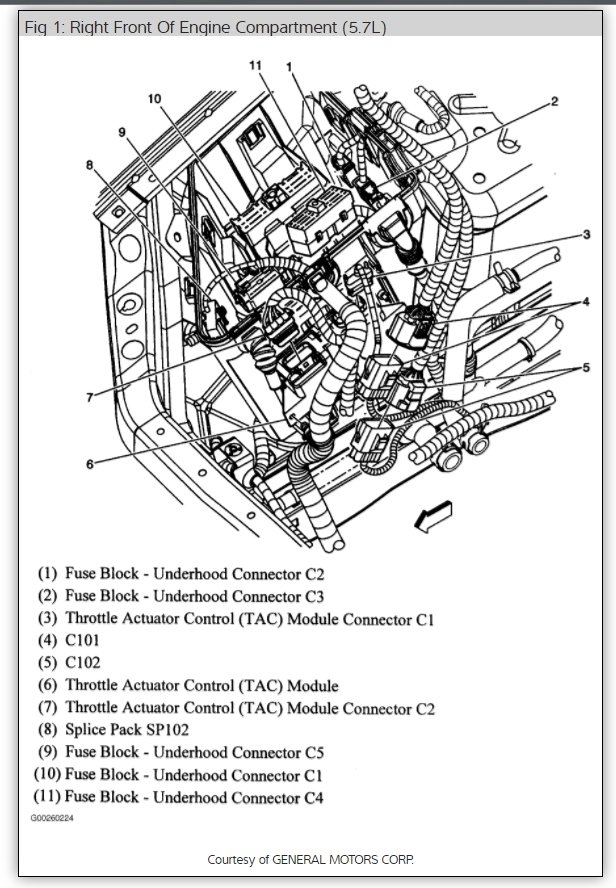 The throttle control module is located under the hood on the right side. Here is a diagram to help you find it (below) Please let us know if you need anything else to get the problem fixed and I have included how the TAC module works
