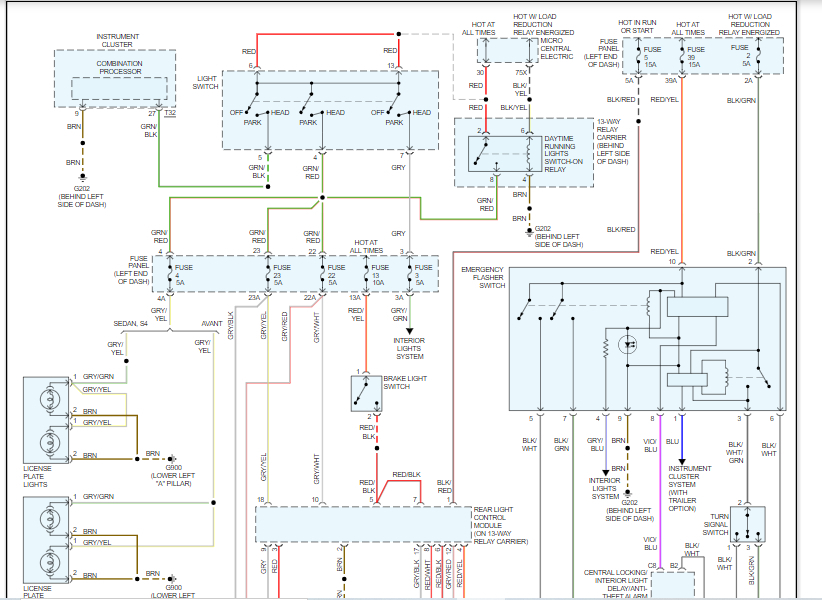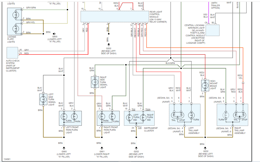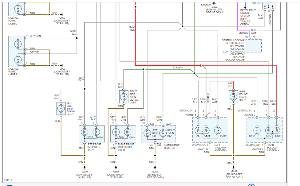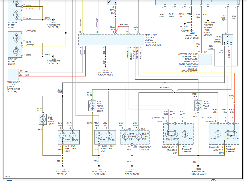 Okay, so my passenger rear taillight doesn't work brake light works. I get voltage to all my wires except for one wire. so, I was just curious what the wiring diagram/pin out is for my taillights, brake lights, blinkers, reverse lights, etc etc. thank you