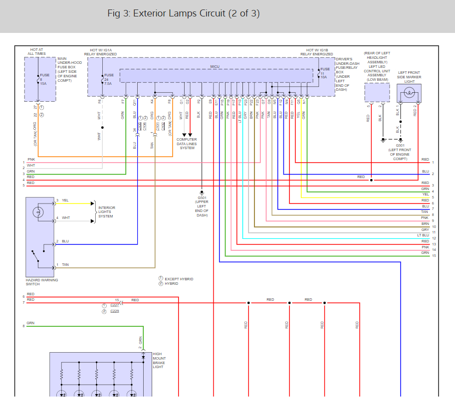 Tail light is not working and audio button that has the navi/phone/info/audio button is not illuminating. Any help in diagnosing the fuse please?