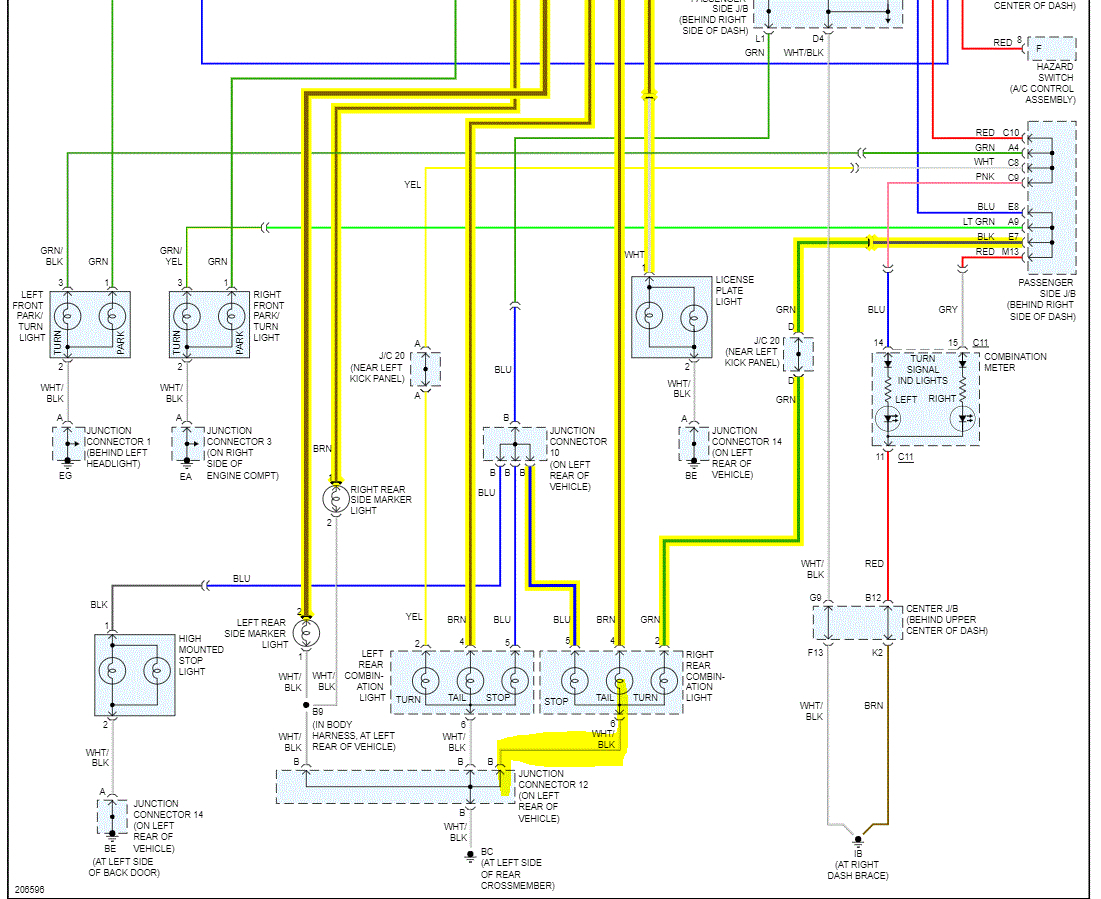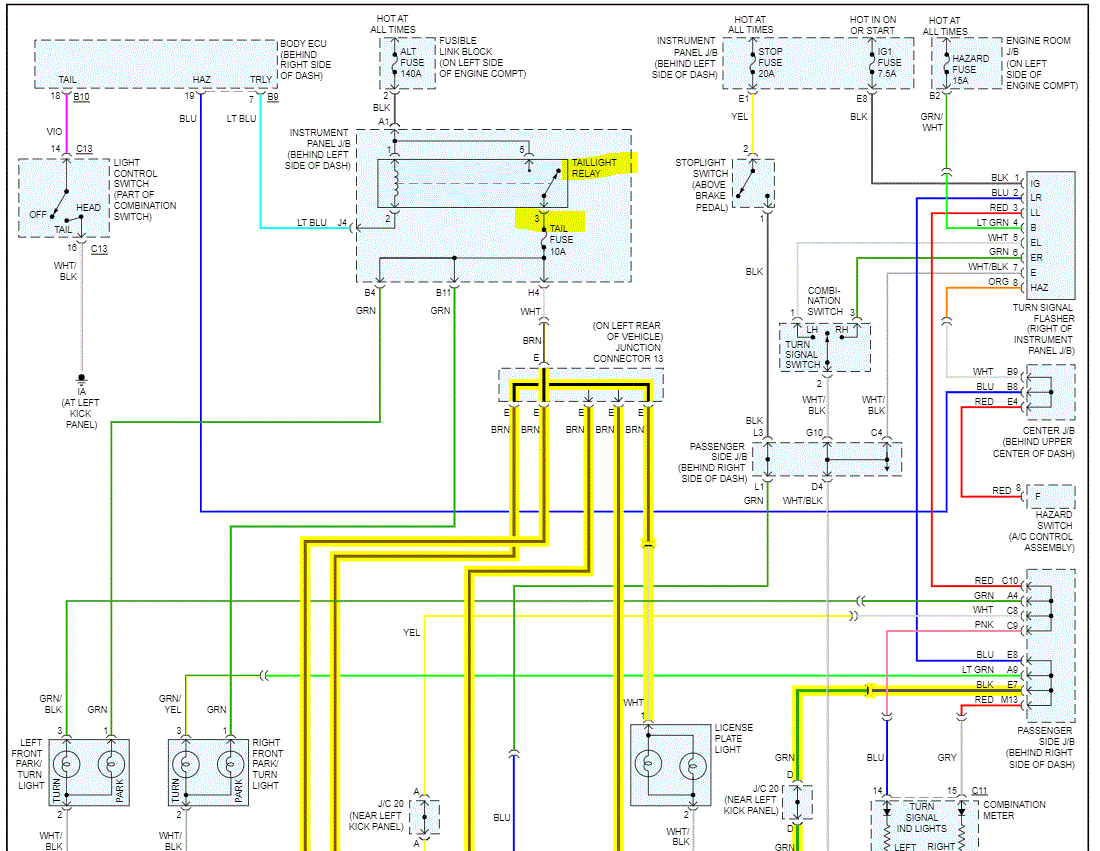 I backed into a tree a few years back and broke the passenger taillight. All lights still worked fine so i taped it up good with all the red and clear tape necessary to avoid a ticket. Finally, a few years of driving tapped up my brother bought a new taillight for my car so he could use it to take his driving test. It was super easy to install but now only the reverse light comes on.