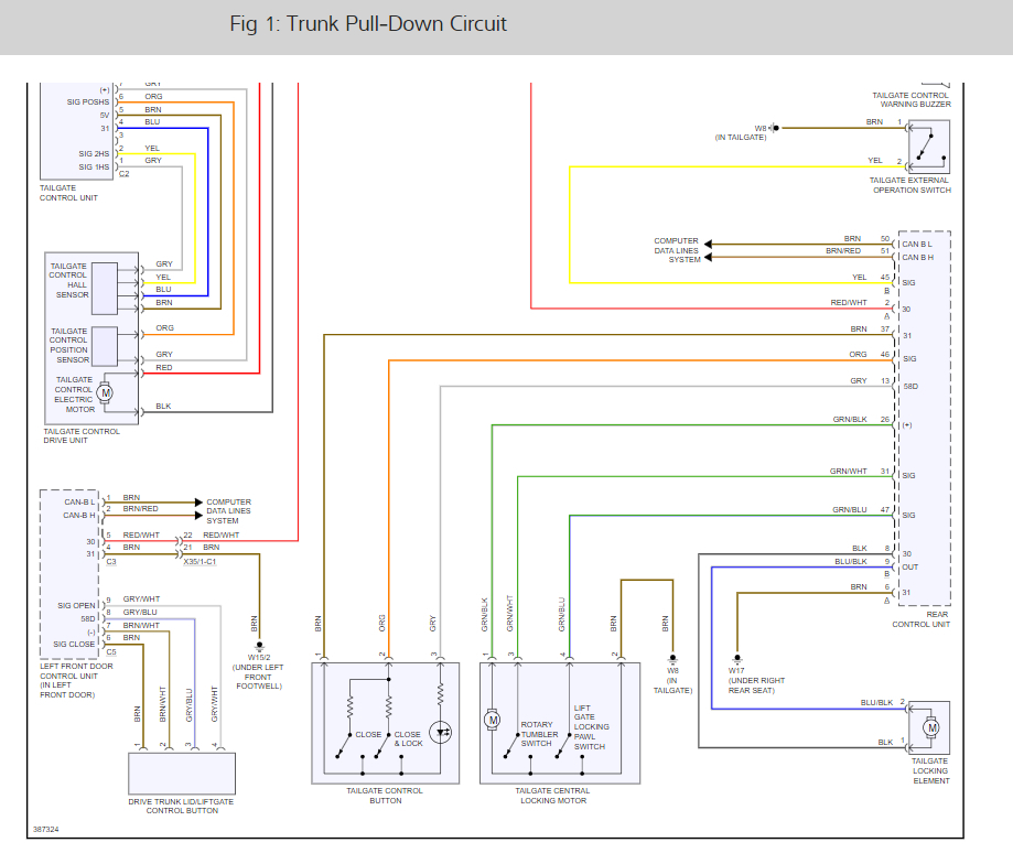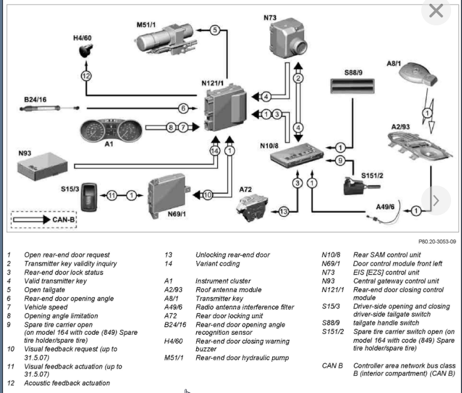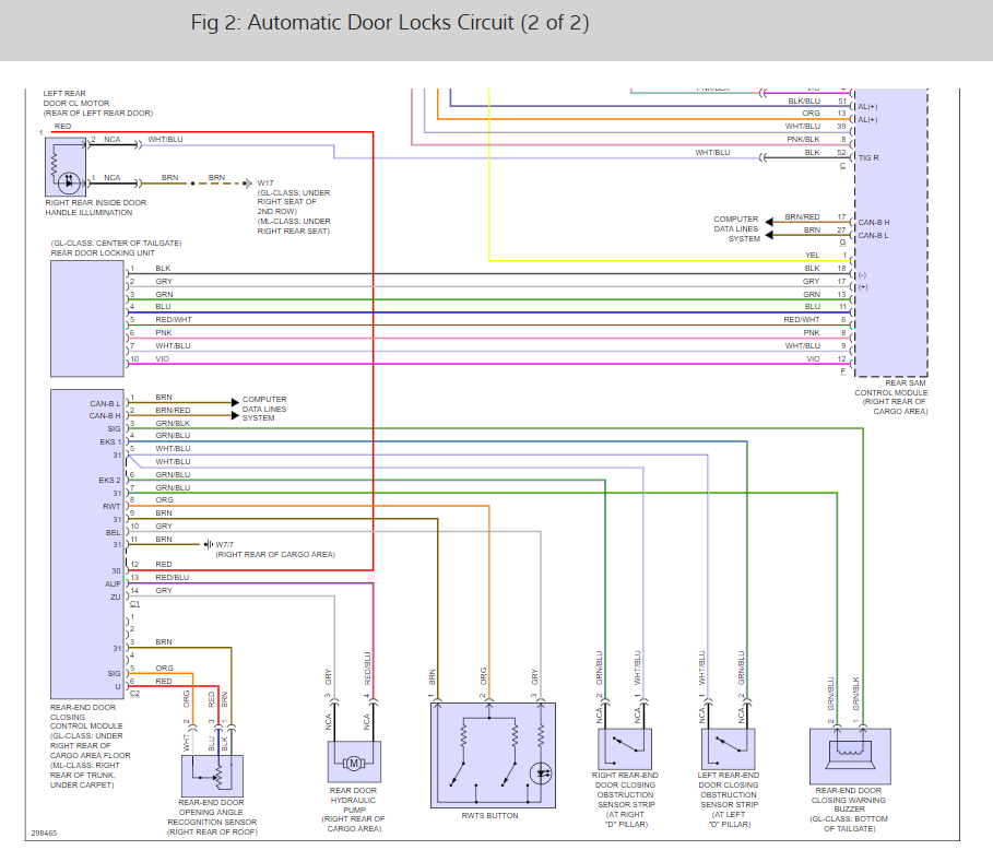 However, the SAM module just gets the signal from the key and other inputs and tells the Rear end door closing module what to do. This module is what actually performs these functions.