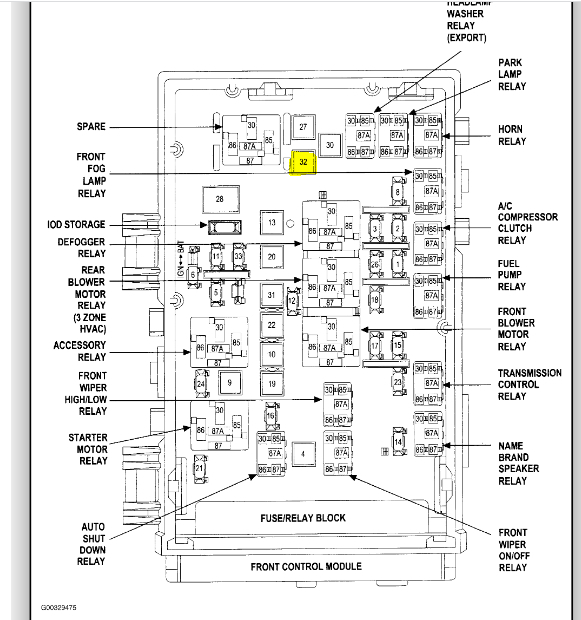 If you haven't already, check fuse 32 in the under-hood fuse box. See if it is good. Also, when you check it, confirm there is power to and from it.