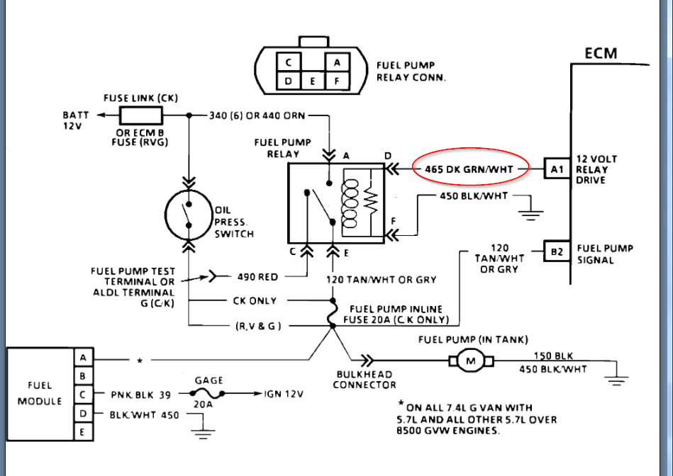 I am attaching the wiring diagram. You mean the wire from the ECM that signals to close the relay from the ECM? If so, that is either an ECM issue if you have proper ignition signal or the ECM is not getting the ignition signal. I think this would be an ECM issue because I don't think the ECM de-energizes this relay if there is no ignition signal. The way I understand it is the ECM will not energize the injectors if there is no ignition pulse.