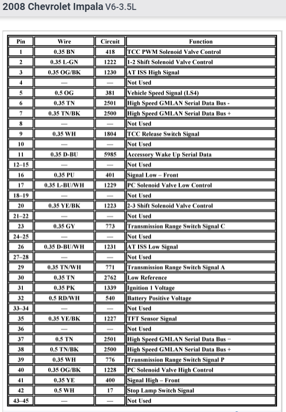 I have attached the pinout diagram for the 2008 Impala with the 3.5L engine.