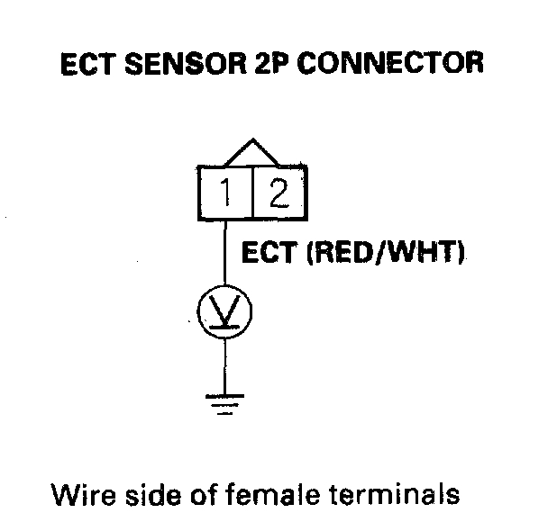 5. Connect ECT sensor 2P connector terminals No.1 and No.2 with a jumper wire.