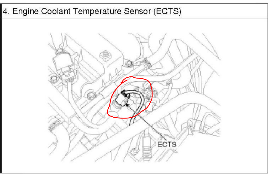 Chances are either there is a connection issue or the sensor is going bad. The engine coolant temperature sensor is located at the rear of the cylinder head. See pictures 1 and 2. Check to make sure the connections is tight. If it is, here are the directions for testing.
