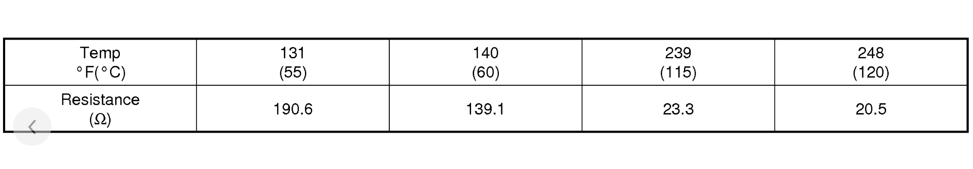 2. If the resistance value is not as shown in the table, replace the temperature sender.
