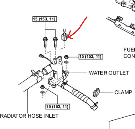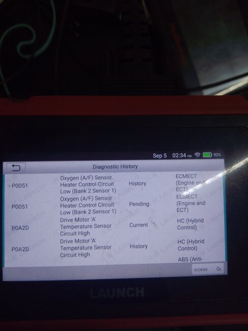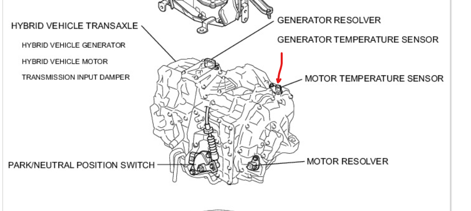 Yep, the engine coolant temperature sensor is in the top of the thermostat housing, and the Drive Motor A temperature sensor is in the images below, here is the location. Please let us know if you need anything else to get the problem fixed.