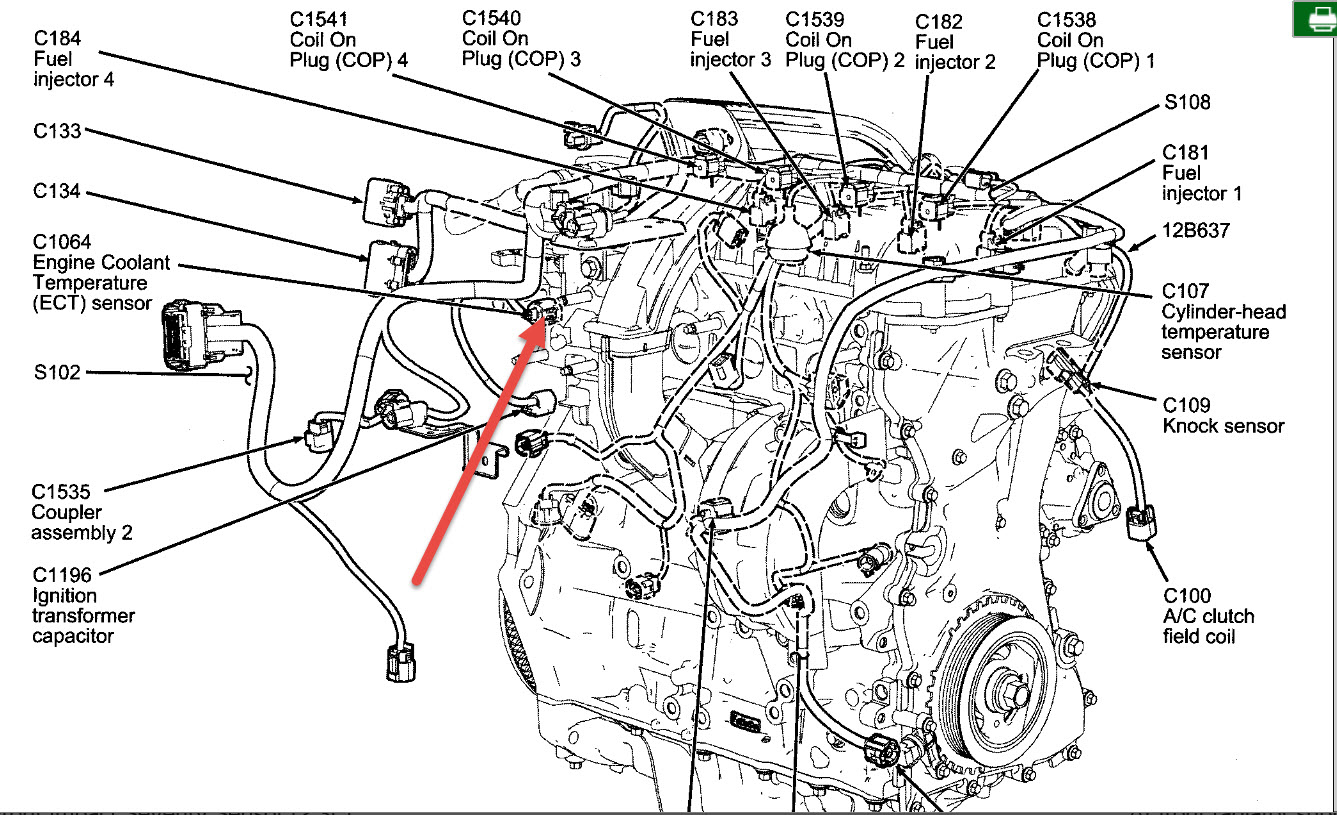 The sensor is located near the front of the engine on a coolant hose fitting. Here is a diagrams for both engines, (below) and a guide that will walk you through the steps of changing the coolant temperature sensor.