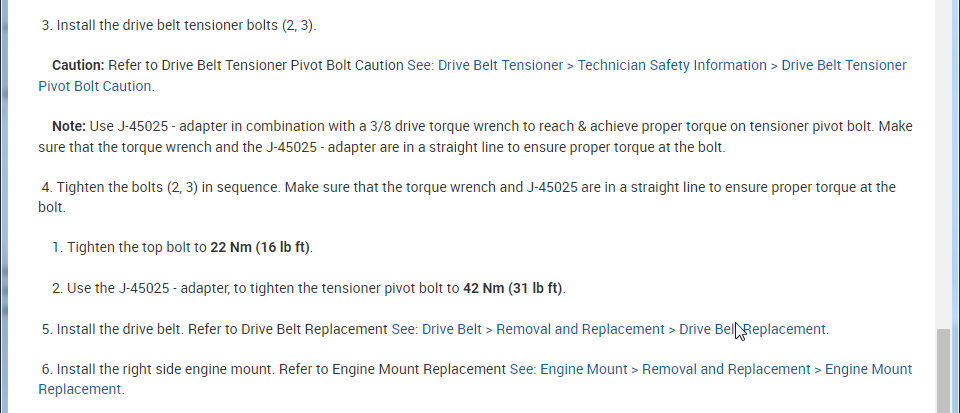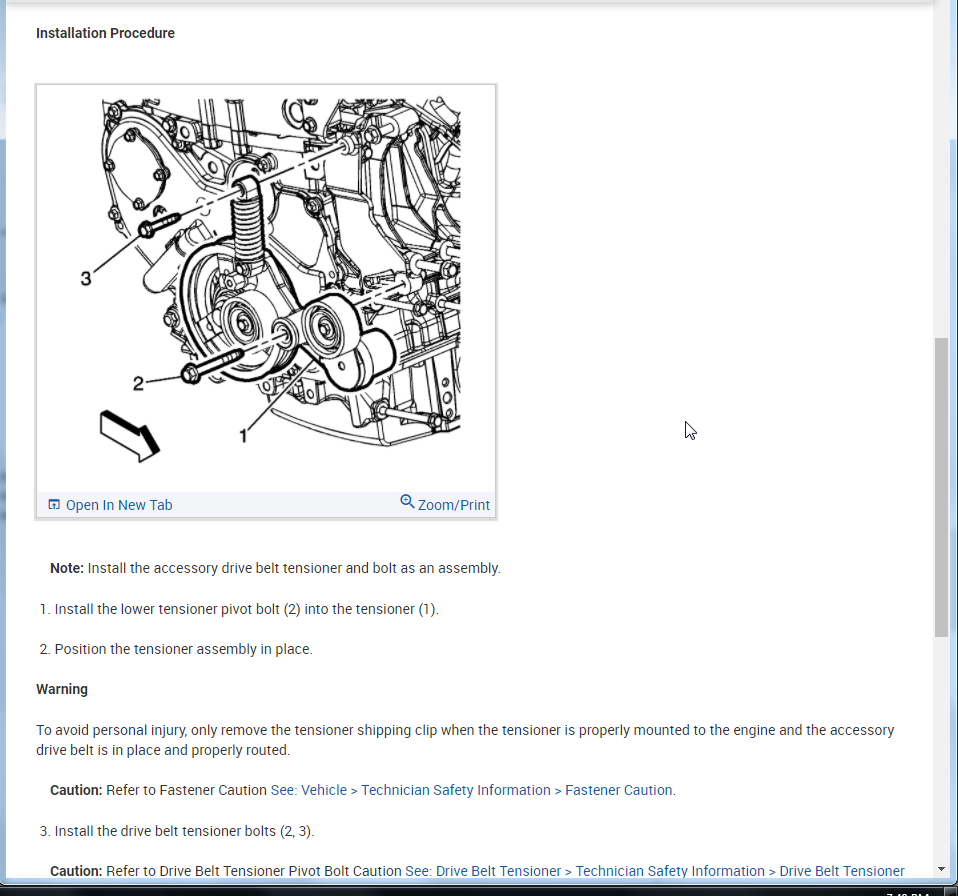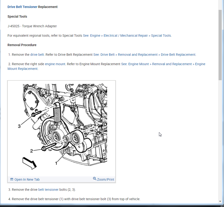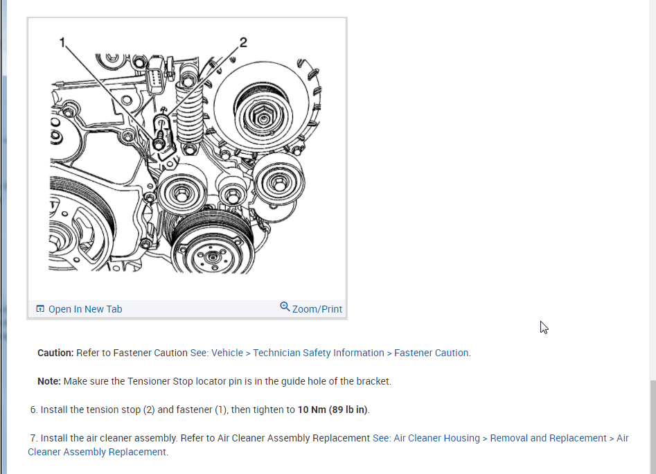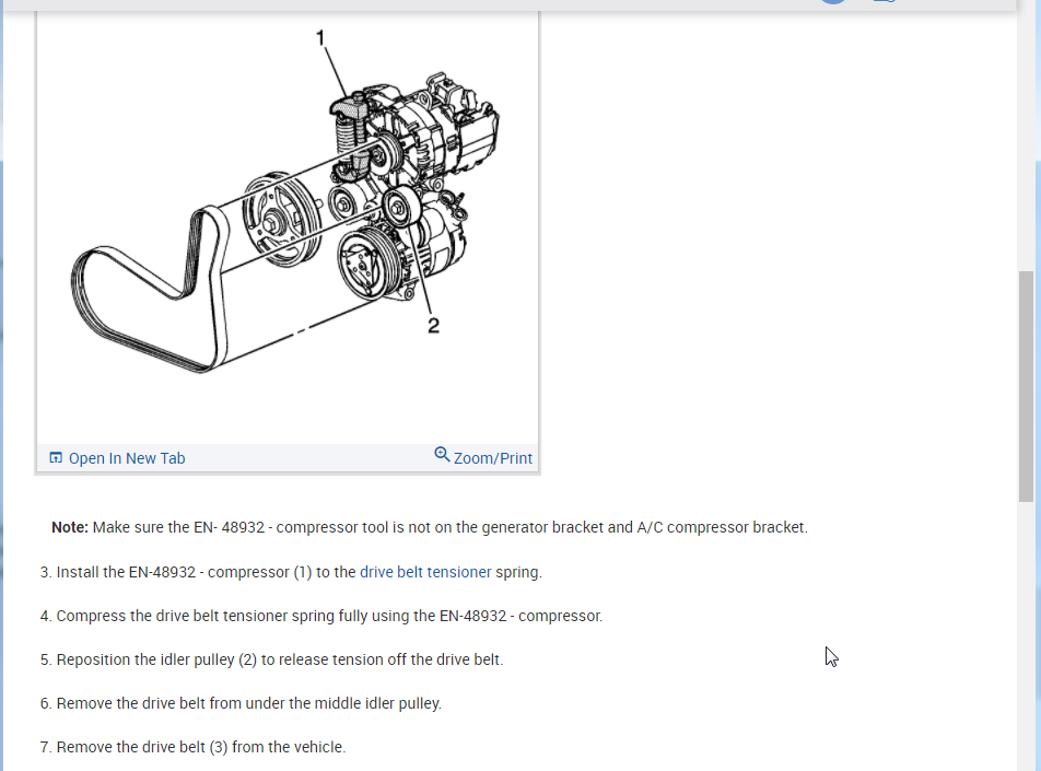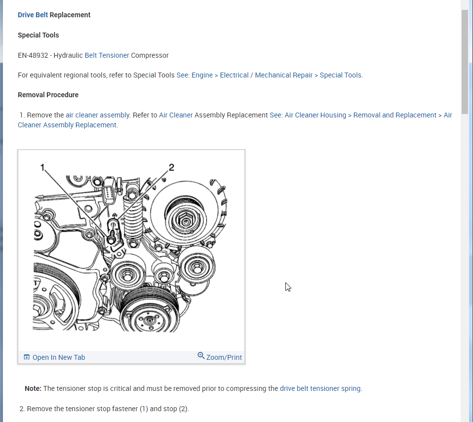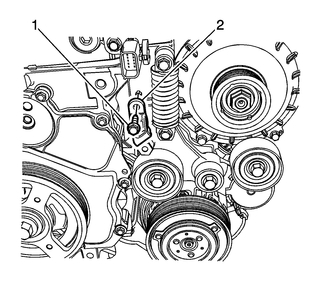 Note: The tensioner stop is critical and must be removed prior to compressing the drive belt tensioner spring.