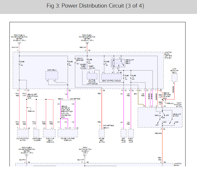 So now here's where I'm at. Nothing happens when I turn the key to start. No luck jump starting. Turning the key to accessory works - bells, lights, and dash lights up. Besides not starting, I have no radio, windshield wipers, power windows, or gas gauge and convertible top button does nothing. Headlights/tail lights work, AC works, windows work, power mirrors work, odometer and display seem normal. No codes are reporting.