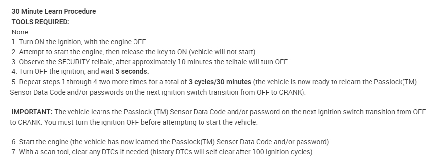 The ignition got drilled out, replaced with a new ignition. Followed steps to relearn key and reset theft system. Everything seemed to work just fine, no theft light. Wait a few seconds and the theft light comes on, accompanied by a buzzer and the daytime light indicator flashing. I’ve tried almost everything. Please help.