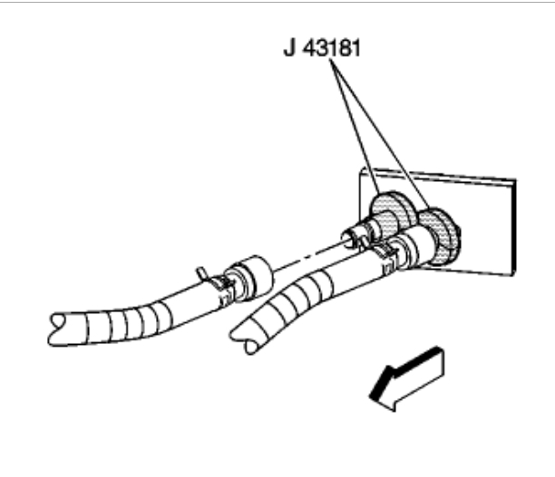 Using the J 43181 disconnect the surge tank outlet hose from the heater core.