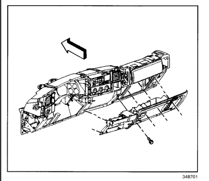 Remove the instrument panel carrier. Refer to Instrument Panel (I/P) Carrier Replacement in Instrument Panel, Gages and Console.