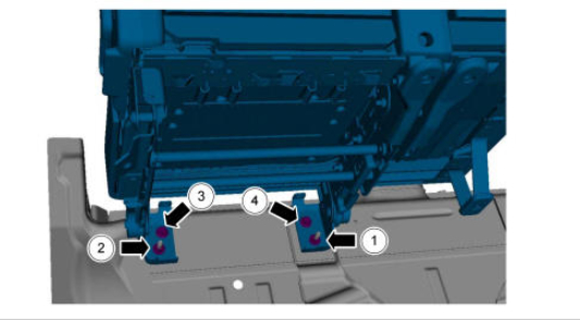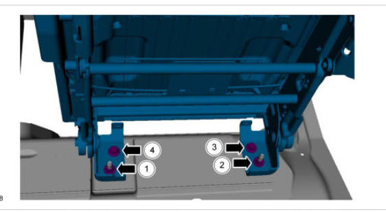 1. Install the third row seat and the 4 mounting bracket-to-floor bolts.