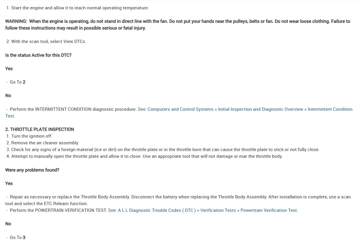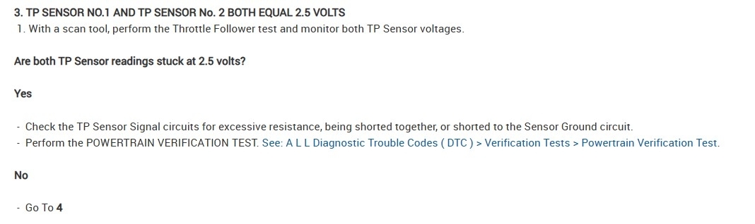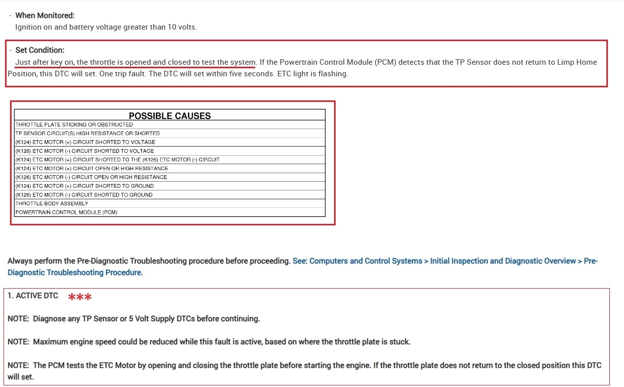 So, this is a throttle body testing code, where the PCM will open and close the throttle plates at key On, and this code indicates that the throttle plates are not reading fully closed. You can actually take the air intake boot off and have someone turn the key on for you and you should see the throttle plates run this test. Just don't put your fingers anywhere near the throttle plates. But watch it and see if it is fully closing, the engine doesn't need to be started for this. If you see the throttle plates are fully closing, then we can have you check for a reference voltage for the TP sensor and a good ground, but I'll put up the wiring diagrams for it anyway.