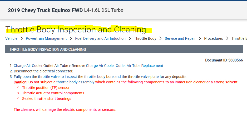 I have the vehicle listed above Turbo Diesel and I need an image of how to remove and clean the throttle body.