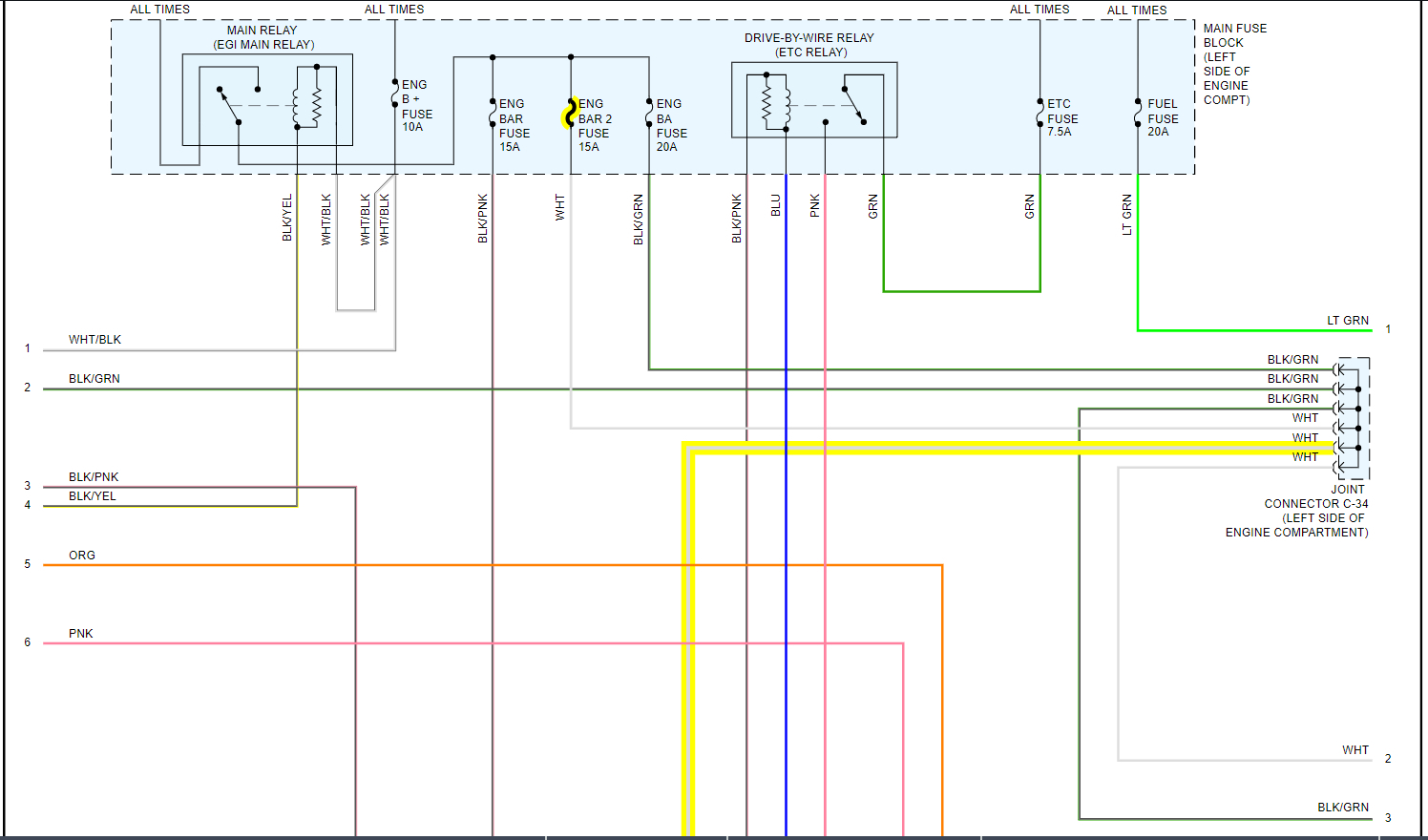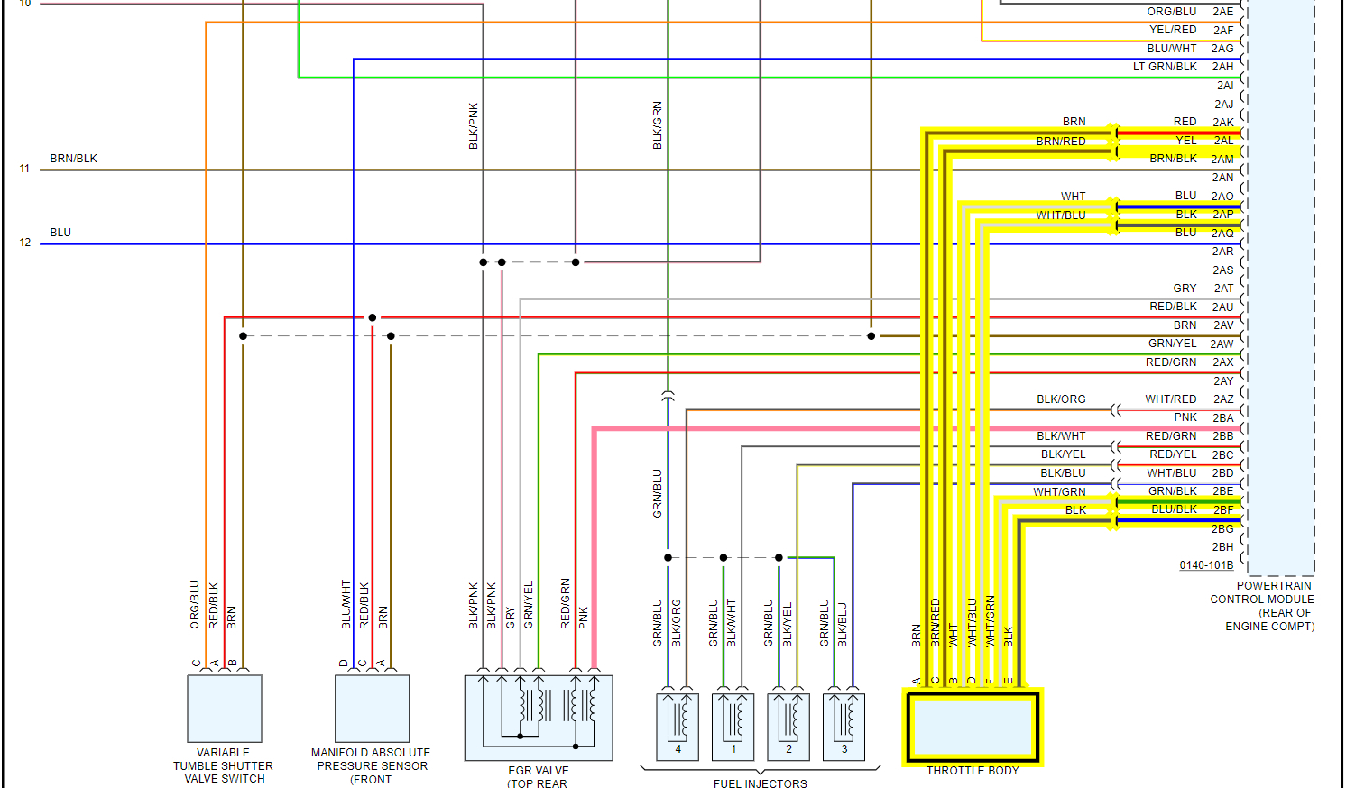 I attached the wiring diagram of the system for you. I highlighted the wires for you of the throttle body and the pedal sensor.