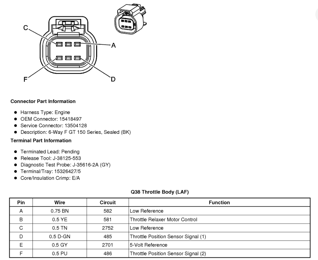 replacing TPS connector with aftermarket connector and the color scheme on the wires are totally different. I need to find out what wires go to and what location on the six-pin aftermarket connector. the existing wires are 1) tan wire with blue stripe