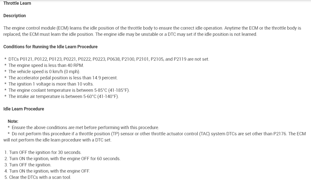 Here are the throttle body relearn instructions and the correct way to replace the throttle body in the images below.
