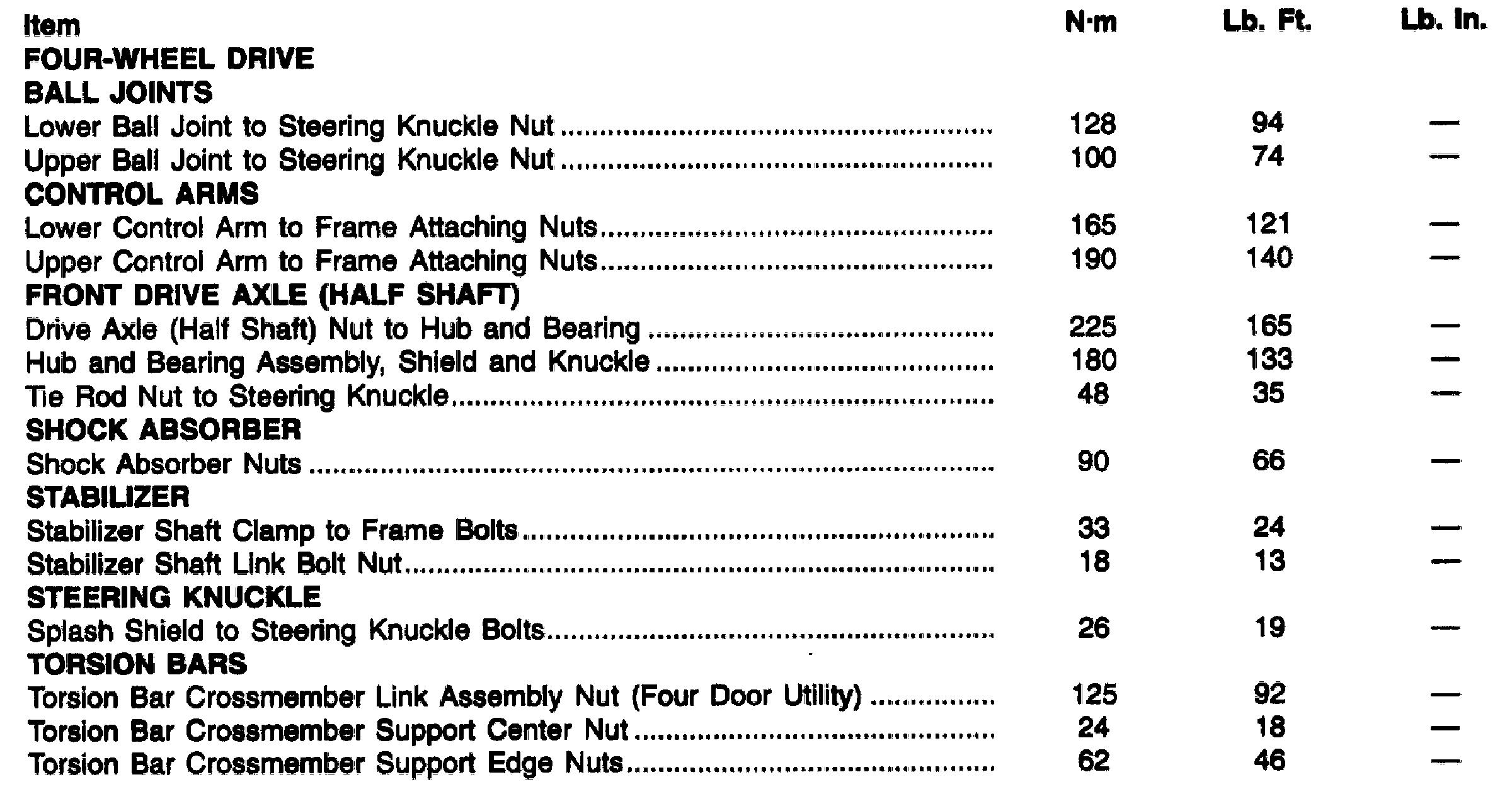 The sleeve for the tie rod ends must be tightened right away. There is no twisting force on that as the vehicle is lowered to the ground. The large nuts on the ends of the ball joints' tapered studs also must be tightened right away. There is no twisting force on them either. Only the control arm bushings get tightened after lowering the vehicle to the ground.