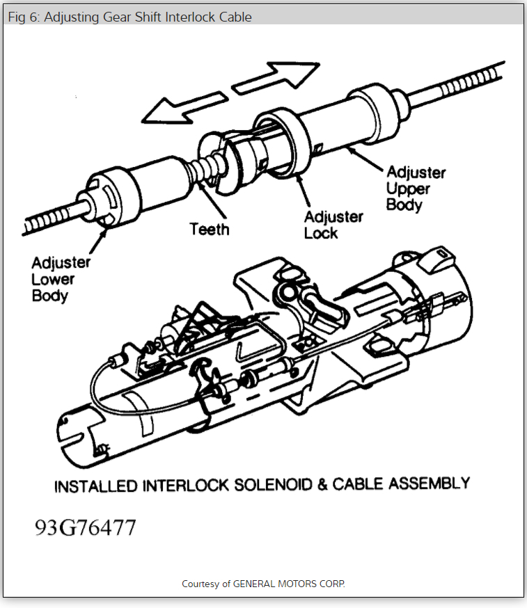 19. Park lock cable into ignition switch inhibiter and snap in place.