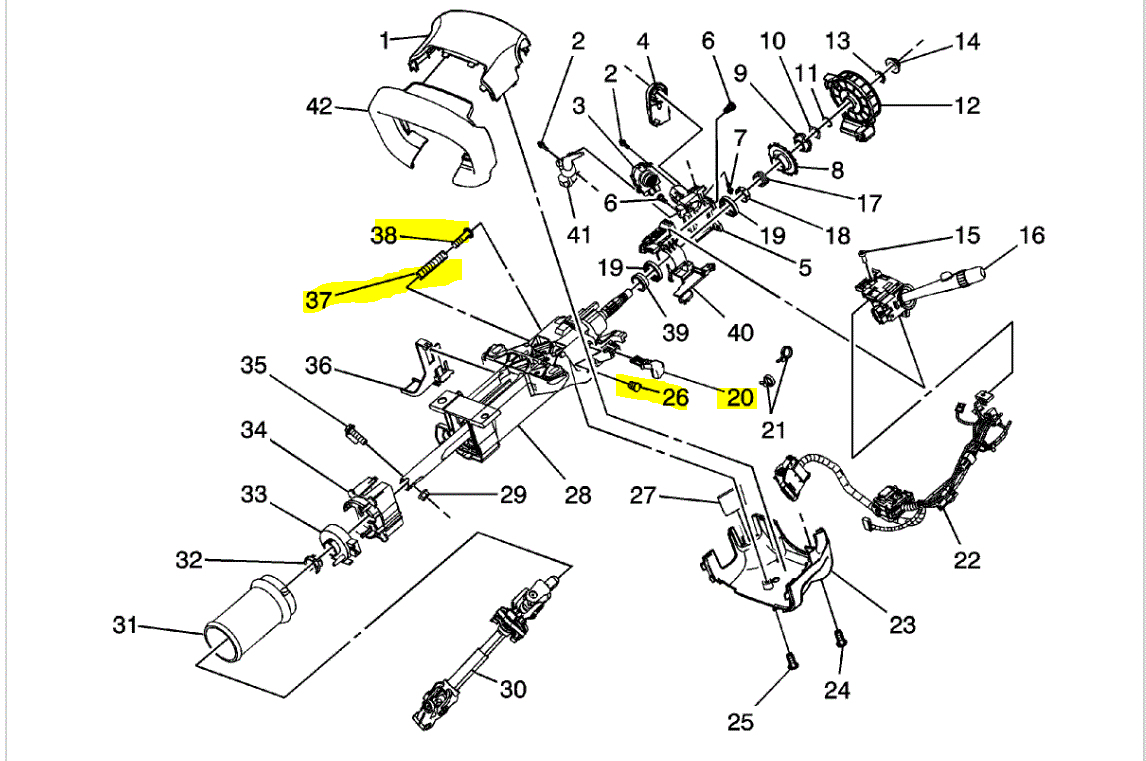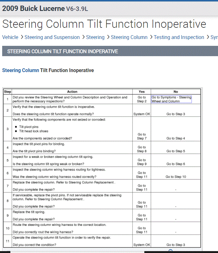 If you look at pic 1 below, it is the diagnostics for identifying an inoperative tilt wheel. In pic 2, I highlighted the components aforementioned.