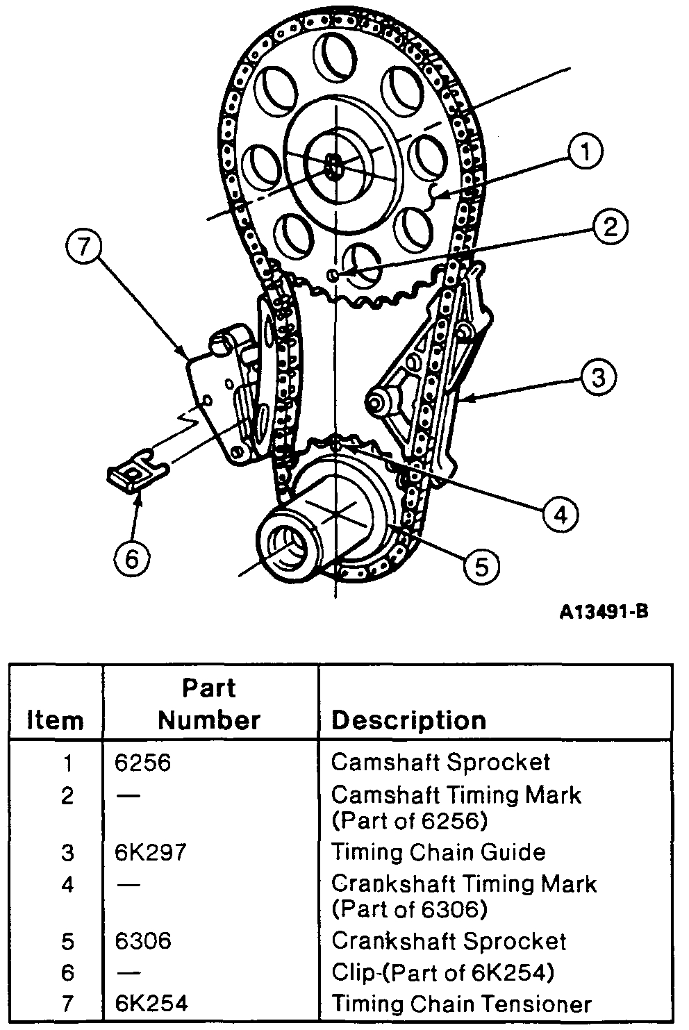 NOTE: Make sure that the tension-er side of the timing chain is held inward, and that the guide side of the chain is straight and tight.