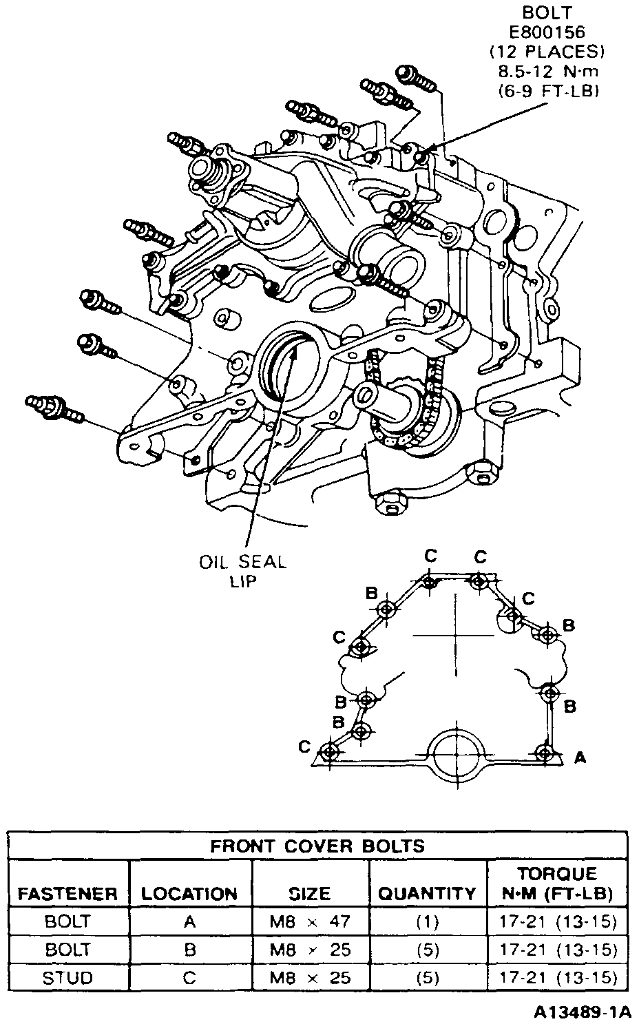 8. Install the engine front cover tighten bolts to 17-21 Nm (13-15 ft lb).