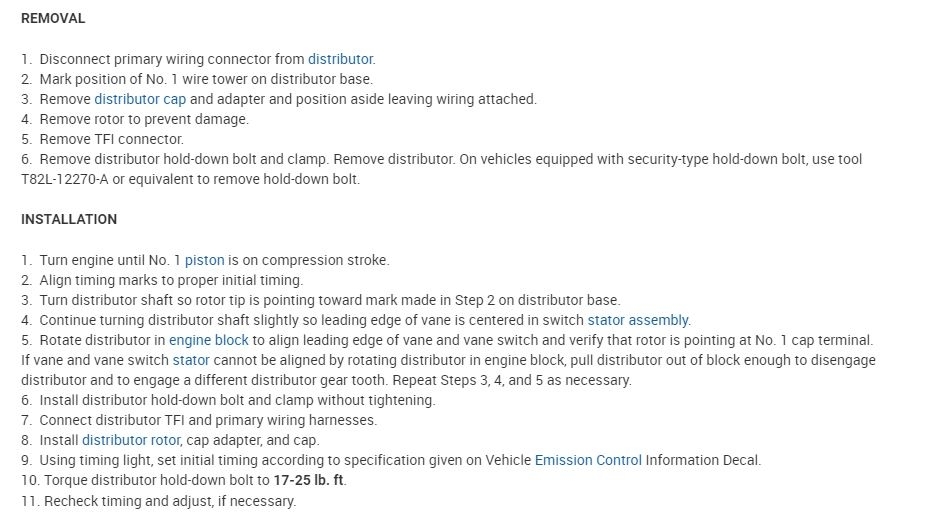 Check timing advance to verify distributor is advancing beyond the initial setting. If it does not, perform EEC IV Quick Test. See: Computers and Control Systems Reading and Clearing Diagnostic Trouble Codes