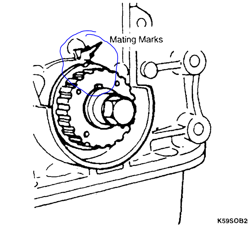 I attached the procedure for the timing belt and the marks that need to be aligned.