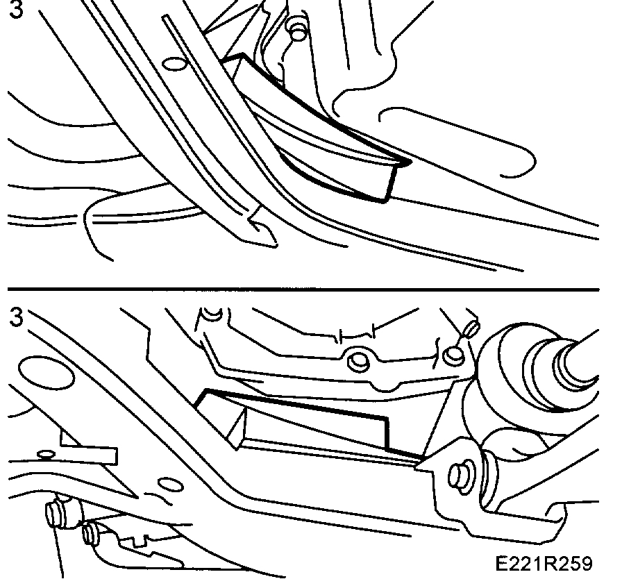 3. Insert two Wedges, part no. 83 95 238, between the oil sump and subframe and between the gearbox and subframe.