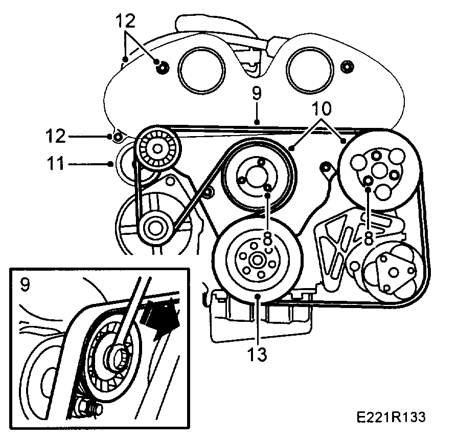 9. Release the multigroove belt from tension.