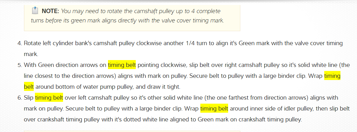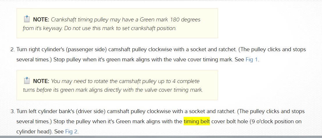I'm trying to set the timing on. It has notches and green marks as well. can someone please tell me how to do this? I am no mechanic. I have replaced the thermostat, water pump, timing belt and pulleys as well as fuel injectors and crank sensor. please help me!
