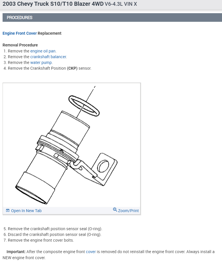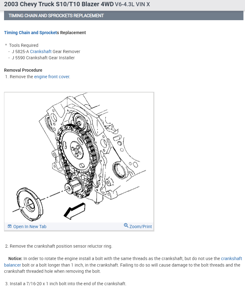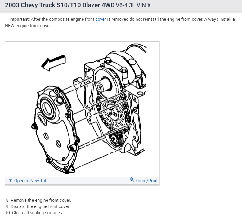 In order to replace the chain, you will have to remove the front engine cover as well as the oil pan. This is the way to replace timing chain on these 4.3L engines.