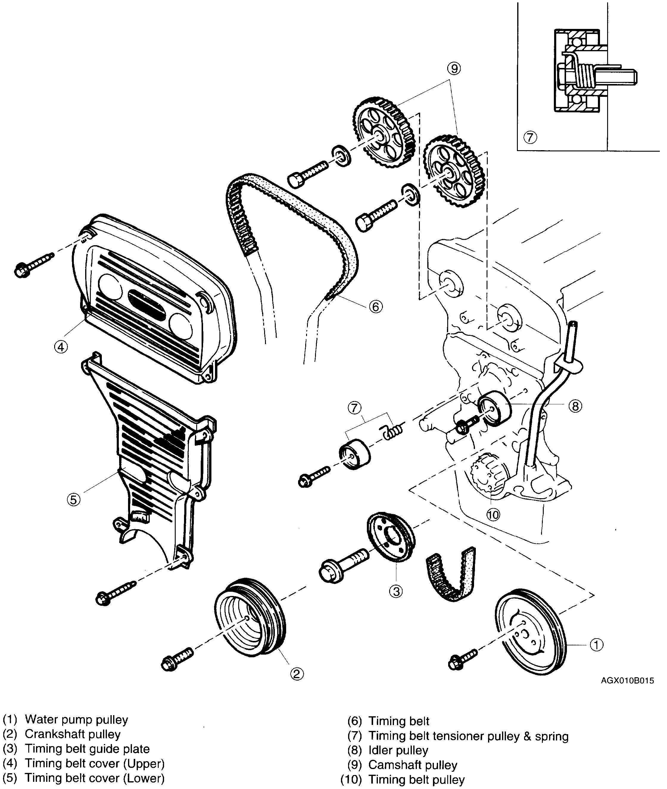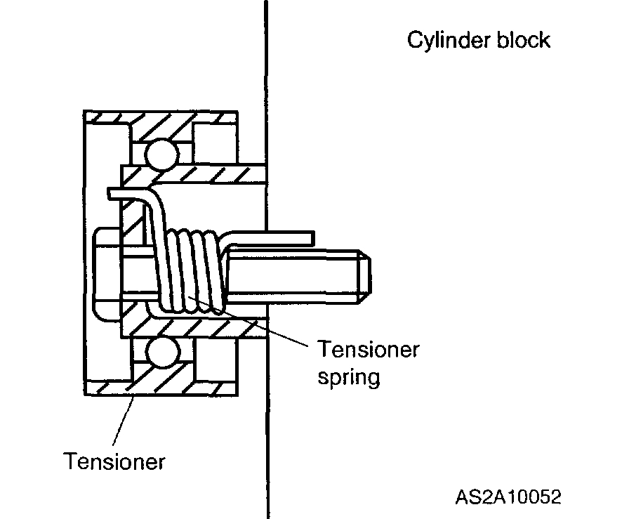 NOTICE: Replace tensioner spring whenever timing belt is replaced.