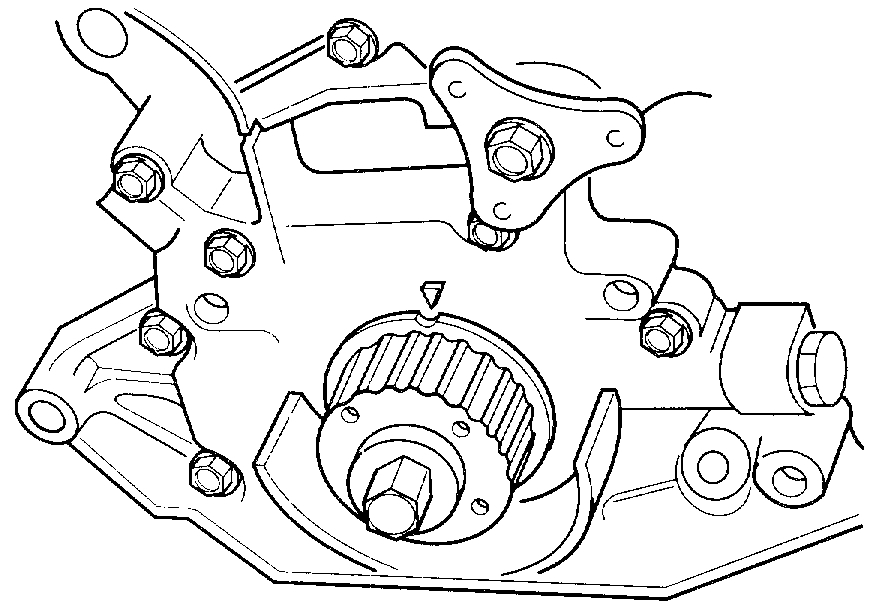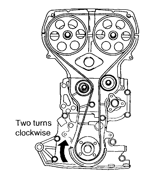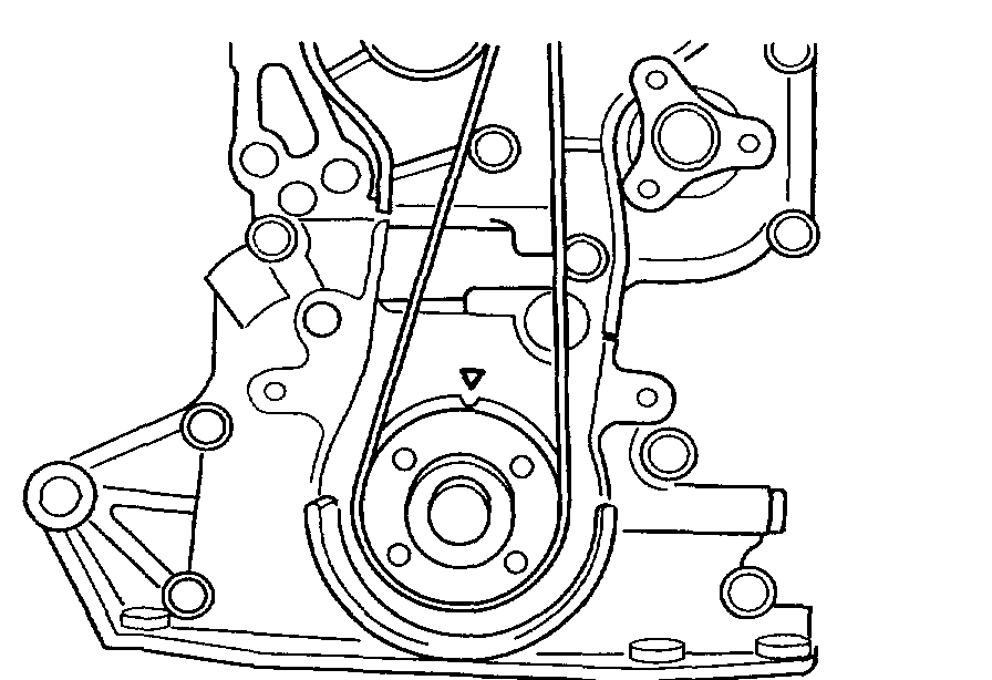 9. Rotate crankshaft two full revolutions (clockwise only) and align timing mark on timing belt pulley with timing mark on engine block.