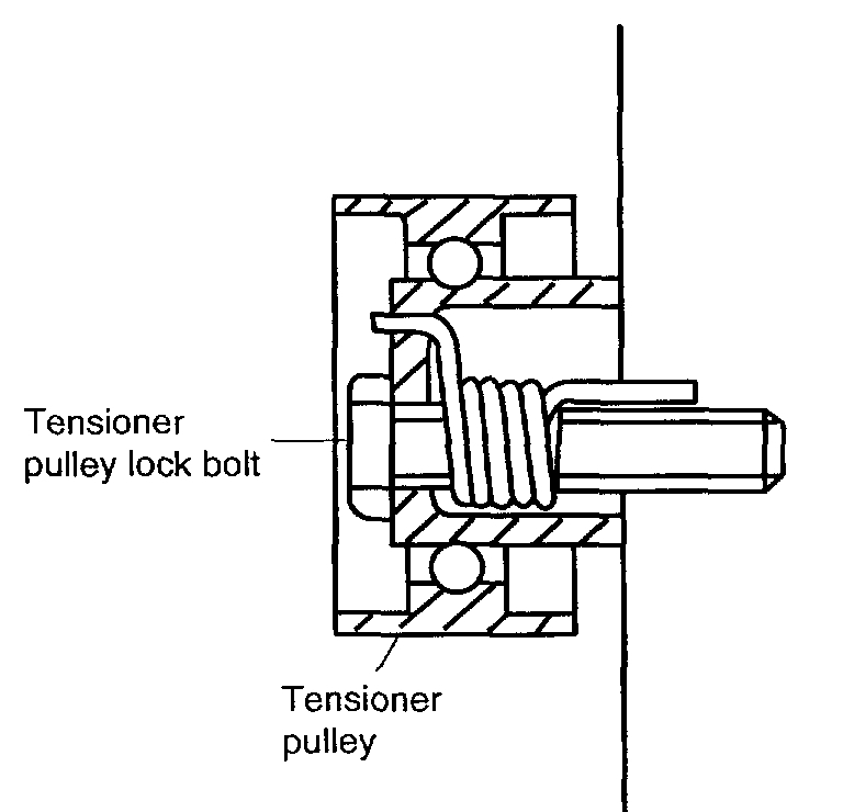 8. Tighten tensioner pulley lock bolt to specified torque.