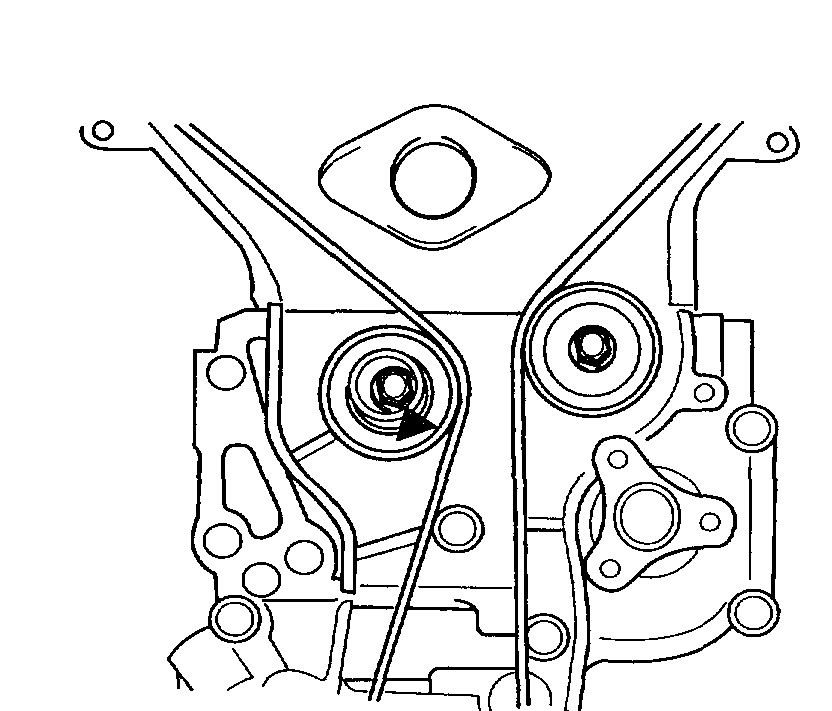 7. Loosen tensioner pulley lock bolt and allow tensioner spring to apply tension to timing belt.