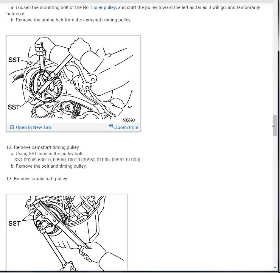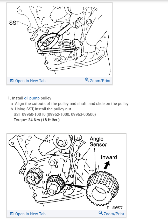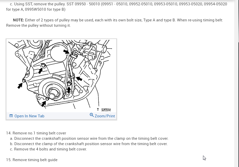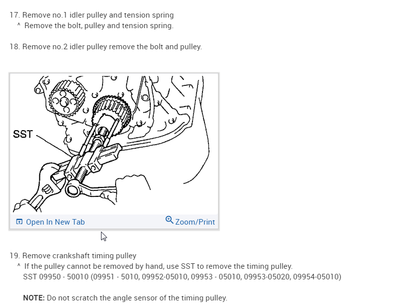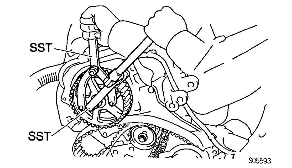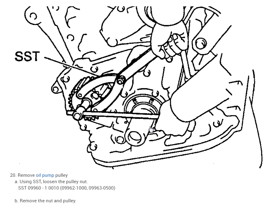 ^ If the pulley cannot be removed by hand, use SST to remove the timing pulley.