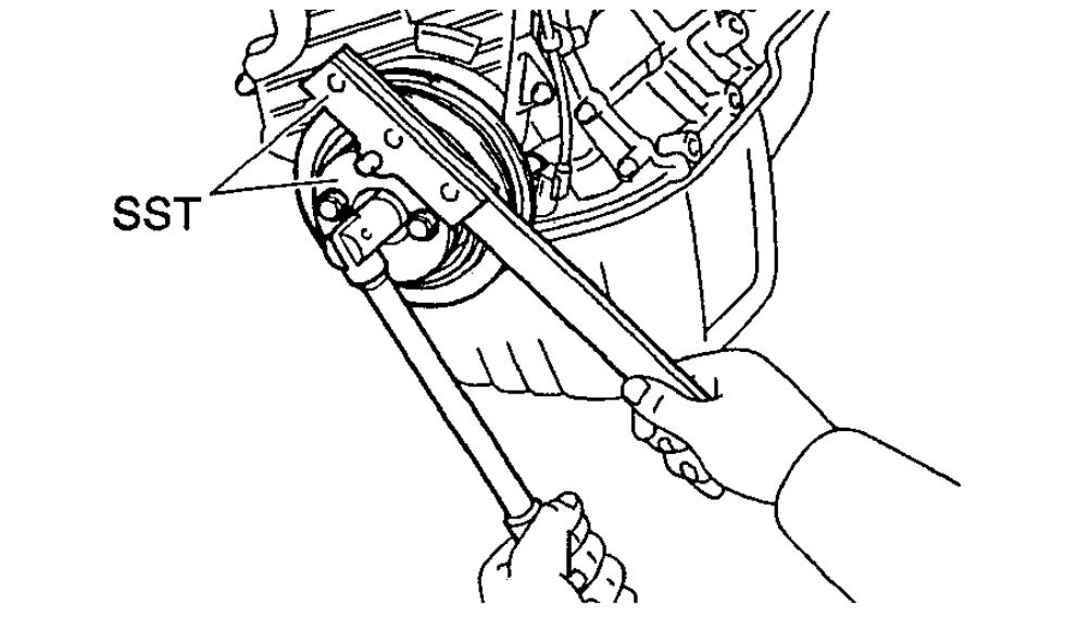 c. Using SST, remove the pulley. SST 09950 - 50010 (09951 - 05010, 09952-05010, 09953-05010, 09953-05020, 09954-05020 for type A, 0995W5010 for type B)