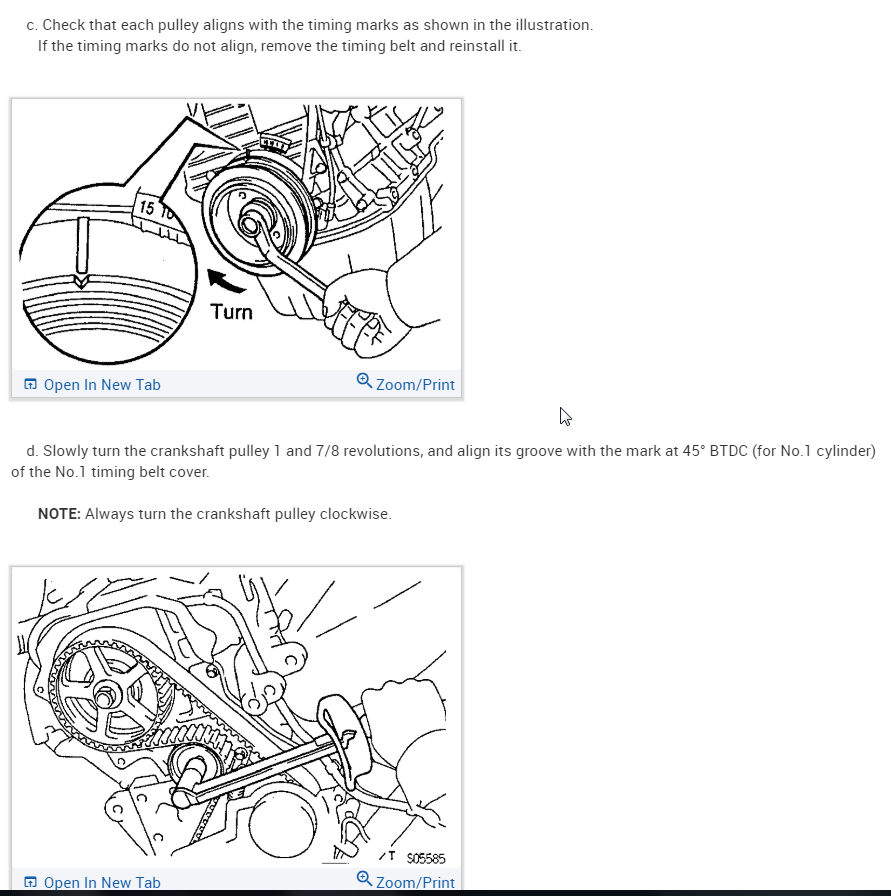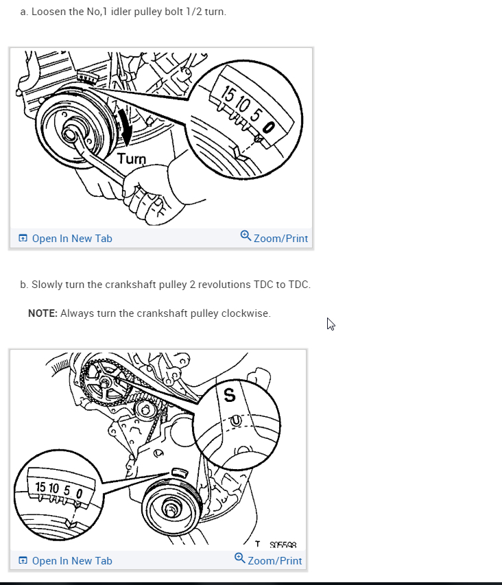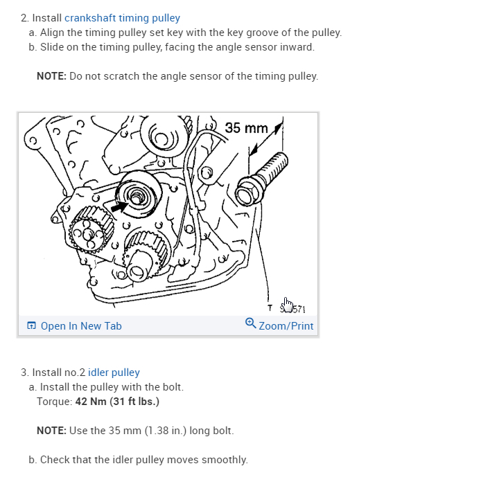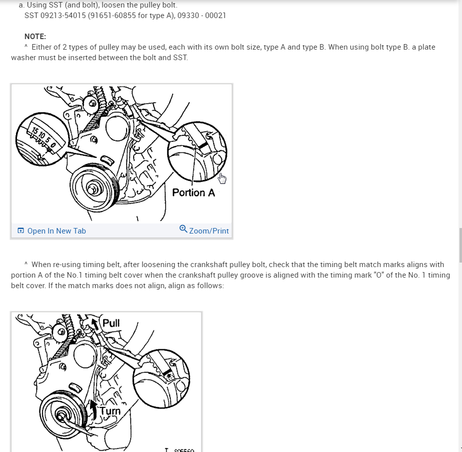 NOTE: Either of 2 types of pulley may be used, each with its own bolt size, Type A and type B. When re-using timing belt: Remove the pulley without turning it.