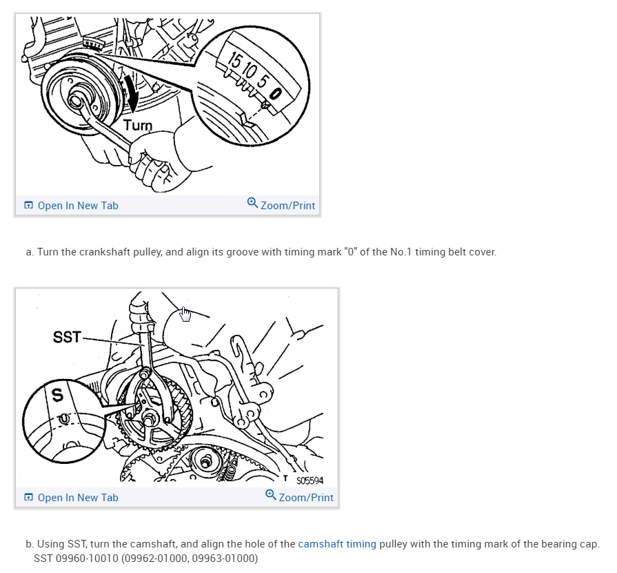 a. Turn the crankshaft pulley, and align its groove with timing mark "0" of the No.1 timing belt cover.